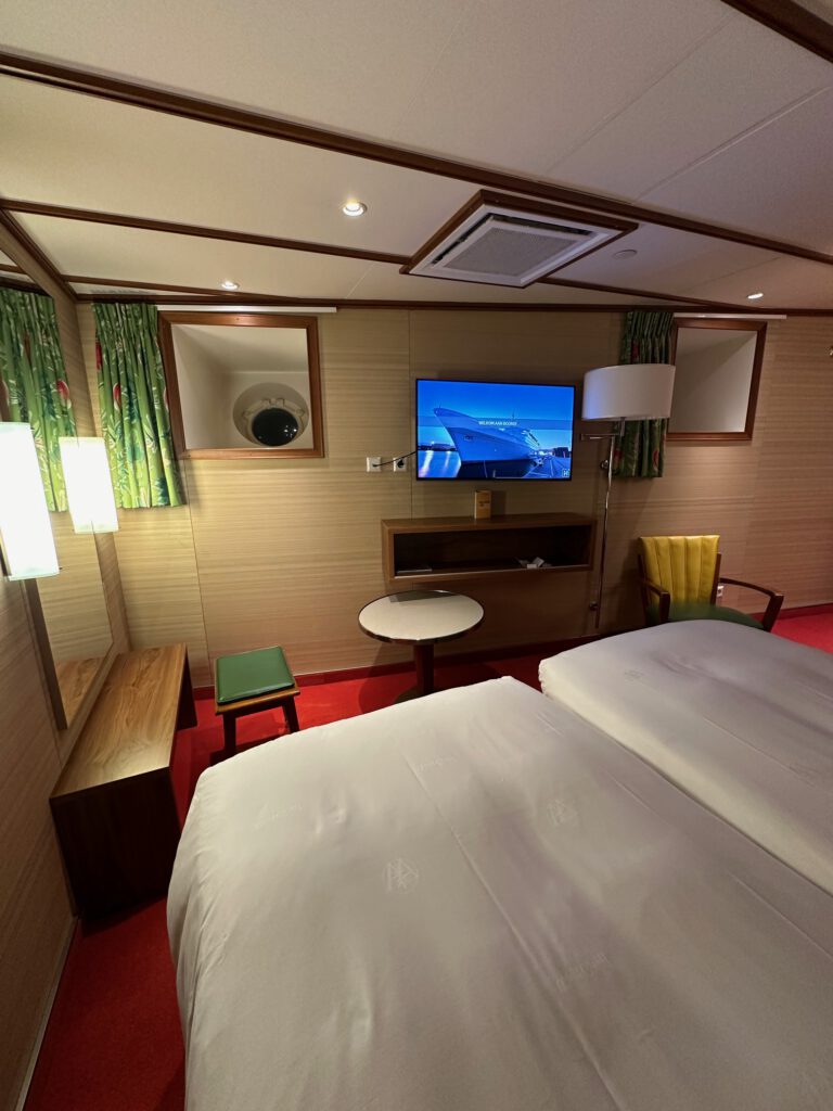 Schon beim Betreten des Schiffes fühlt man sich in eine Zeitkapsel Ende der 1950er Jahre versetzt – jede Kabine, jede Lounge und jedes Detail atmen den Geist der goldenen Ära der Ozeandampfer. Es ist vorbildlich und liebevoll detailgetreu erhalten. Das Schiff wurde 1959 gebaut und war einst das Flaggschiff der niederländischen Transatlantikflotte, der Stolz einer Nation. Heute zählt die SS Rotterdam zu einem der weltweit drei letzten noch existierenden Ocean Linern, die auf diese Weise erhalten und genutzt werden.