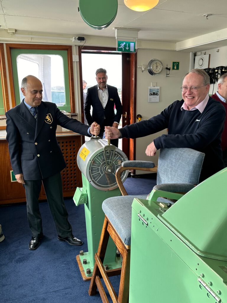 Ich selbst hatte 2024 die Gelegenheit, die SS Rotterdam im Rahmen einer Ocean Liner Konferenz mit hochkarätiger Besetzung intensiv kennenzulernen. Schiffsarchitekt Dr. Stephen Payne, eine Koryphäe in seiner Disziplin (links), Queen Mary 2-Master Aseem Hahsmi (rechts) und der aktuelle Schiffschefingenieur Lars Langeveld (links daneben) führten mit weiteren Experten durch das Schiff (s. Foto). Gerade in diesem fachlichen Kontext wurde mir bewusst, welche Bedeutung das Schiff auch als Ort des Austauschs und der Inspiration hat. Die Verbindung von maritimer Geschichte, zeitgemäßer Nutzung und internationalem Dialog war dort spürbar. Diese persönliche Begegnung hat meinen Blick auf das Schiff nochmals vertieft.